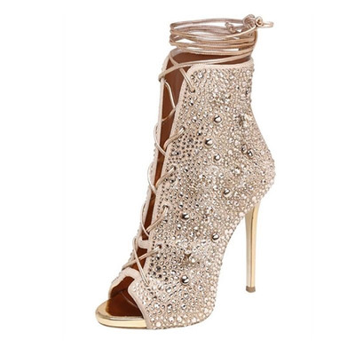 Купить ботильоны в интернет магазине недорого. Бежевые ботильоны со стразами.